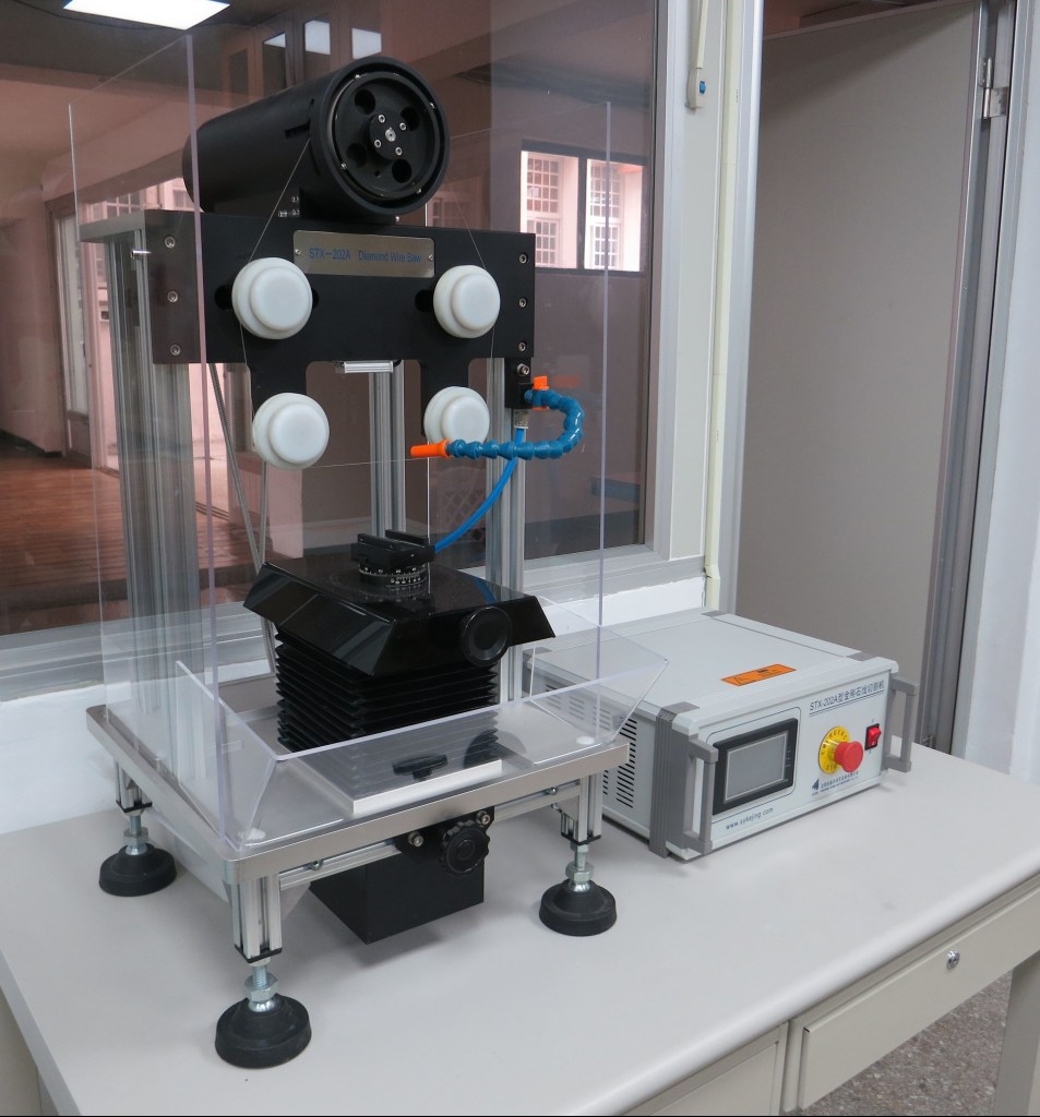 採用自動推進的方式,提供各式材料進行精密切割,並搭配3R無線顯微鏡以提高切割精密度,最薄厚度可達0.08 mm。